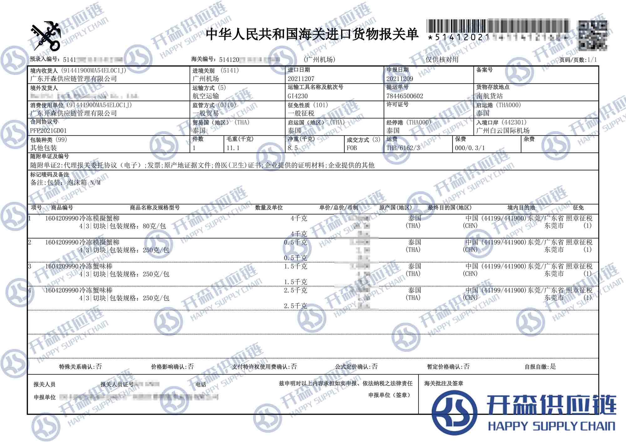 【本文結語】 上述就是泰國冷凍蟹柳進口報關清關代理【經典案例】的全部內容,希望能對您有所幫助,如有水產品進口報關上任何疑問及問題可隨時在線聯系我們或撥打 18002611553,開森供應鏈擁有豐富的水產品進口報關操作經驗及案例,10余年進口經驗為您所用,各類進口疑難都能為您一一解答及協助快速處理解決!