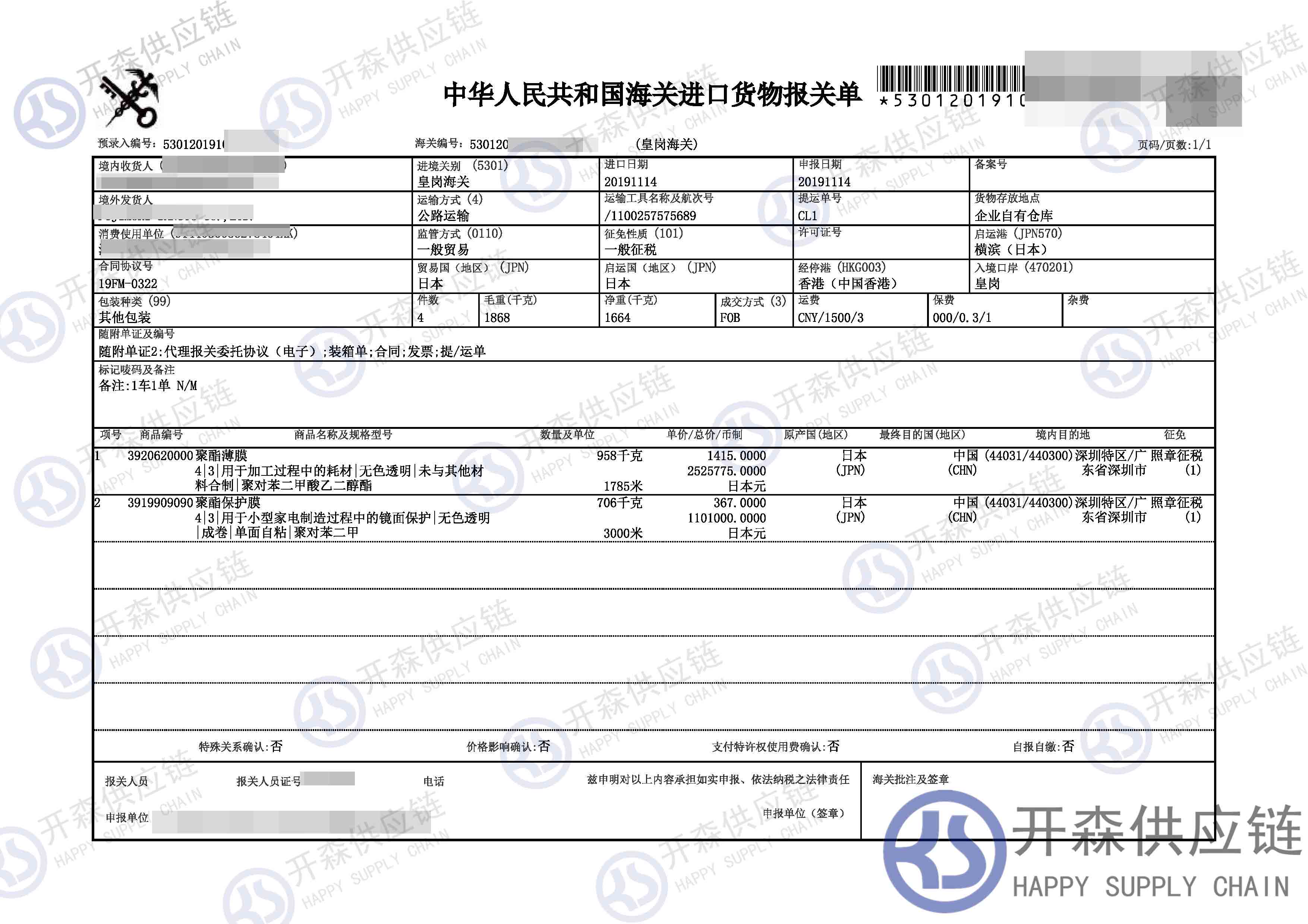 【本文結語】 上述就是【進口案例】聚酯薄膜進口報關代理服務的全部內容,希望能對您有所幫助,如有化工品進口報關上任何疑問及問題可隨時在線聯系我們或撥打 18002611553,開森供應鏈擁有豐富的化工品進口報關操作經驗及案例,10余年進口經驗為您所用,各類進口疑難都能為您一一解答及協助快速處理解決!