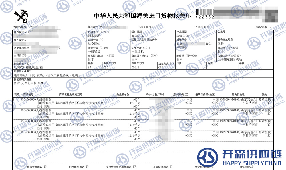 開森進口供應(yīng)鏈擁有豐富的游戲機進口報關(guān)操作經(jīng)驗及案例,十余年操作經(jīng)驗及案例可供參考,可按需定制游戲機進口方案,幫助客戶解決進口難題,快速進口清關(guān)到港到貨。