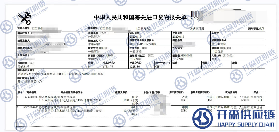 【本文結語】 上述就是樂高玩具進口報關清關代理服務【經典案例】的全部內容,希望能對您有所幫助,如有玩具進口報關上任何疑問及問題可隨時在線聯系我們或撥打 18002611553,開森供應鏈擁有豐富的玩具進口報關操作經驗及案例,10余年進口經驗為您所用,各類進口疑難都能為您一一解答及協助快速處理解決!