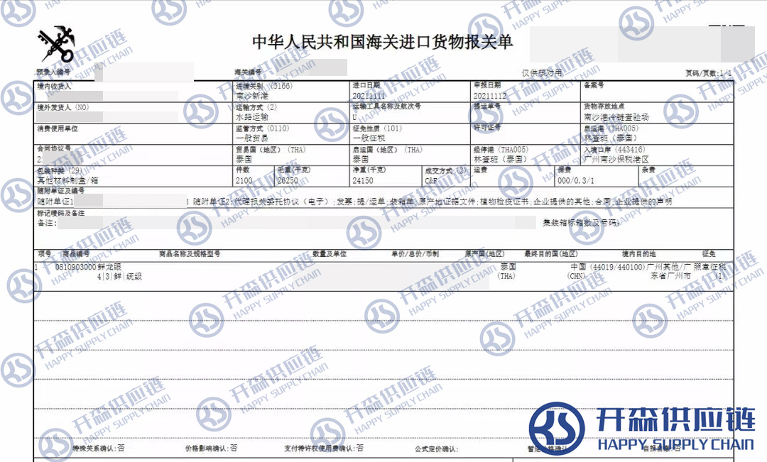 【導(dǎo)讀】您正在閱讀的是關(guān)于泰國(guó)鮮龍眼進(jìn)口清關(guān)報(bào)關(guān)代理服務(wù)【經(jīng)典案例】的內(nèi)容,本文由開森水果進(jìn)口報(bào)關(guān)代理小編整理編寫;